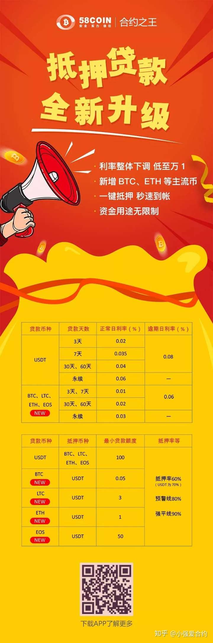 大家都知道,抵押贷款是58COIN首创推出的,主要目的是盘活存量数字资产。在去年11月首次升级的基础上,今年3月,功能更全、可抵/可贷币种更丰富、利率更低、周期更灵活的全新升级版的抵押贷款业务已经面世,等待您的体验。