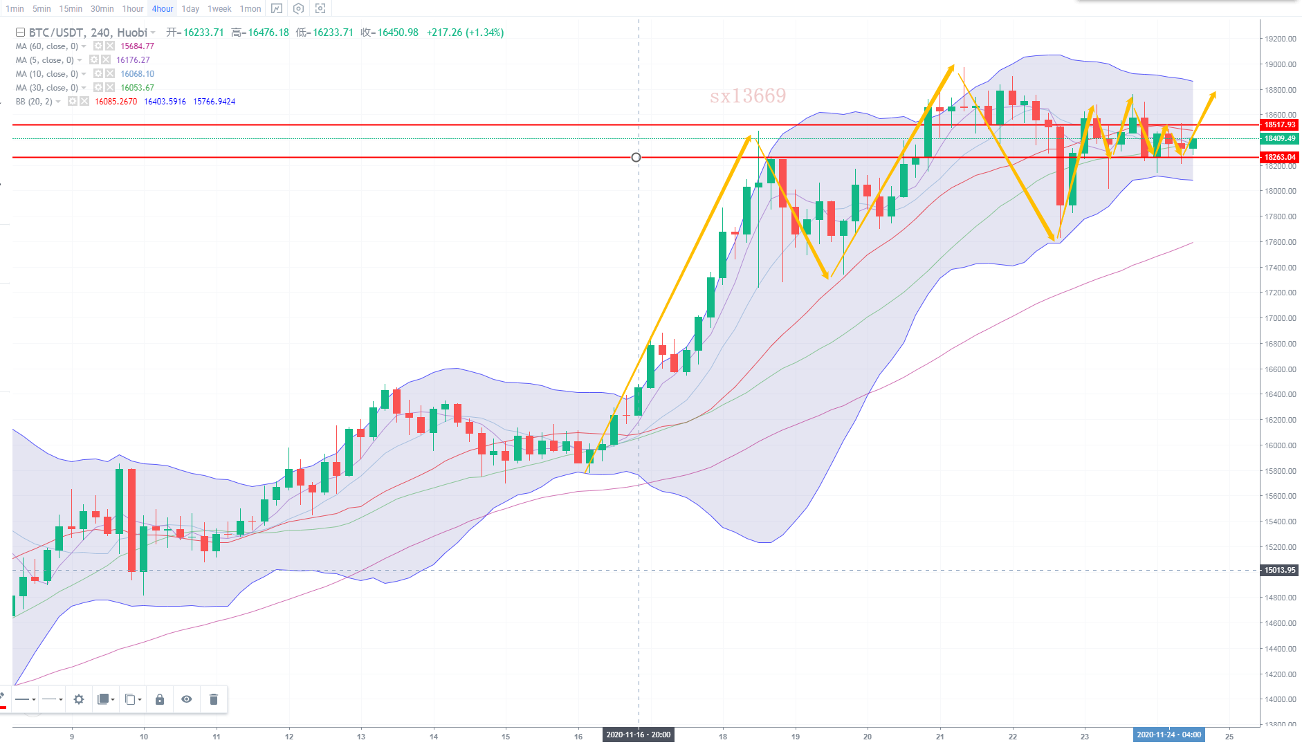 比特币今日依然保持区间震荡走势,早间主力洗盘上下插针,多空交替发力但始终没有突破18200-18600区间,价格都是试探后立即反弹没有形成实体突破,目前币价在18350一线徘徊。今天白盘的思路还是保持一个震荡走势对待,日内一直呈现一个冲击后的回调需求,空头在一定程度上影响到行情走势,目前比特币没有达到上破两万关口的量能。