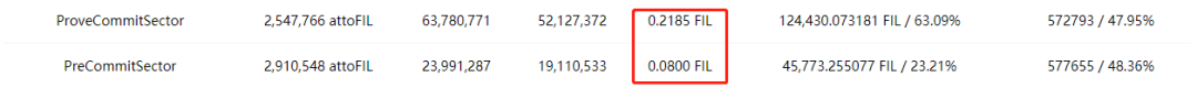 其中增长算力所消耗的gas主要在P2和C2阶段,即PreCommitSector和ProveCommitSector;由于Filecoin作为一个存储类型的公链,所以Filecoin的基本单位是Sector (也被称为扇区),1TB的有效算力由32个32GB的扇区组成(32X32=1024)。