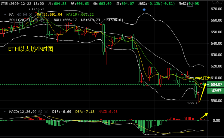 ETH(以太坊)实时操作建议:反弹在610做空,止损615,目标600附近;
