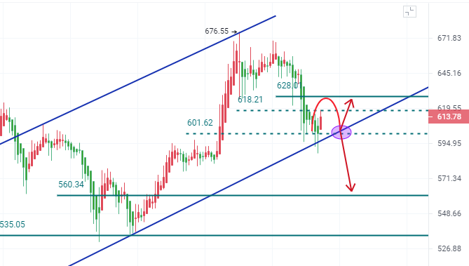 2、上方不破620,建议619-615空,止损623之上,目标看610-604-601,破位看590附近