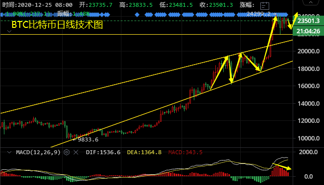 BTC(比特币)实时操作建议:回落在23250做多,止损23000,目标23600附近;