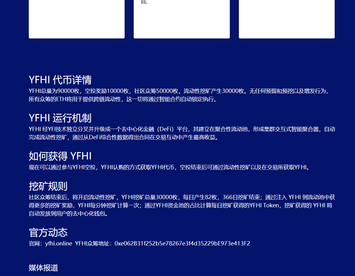 YFHI将于2021年1月20日结束空投,结束后将自动发放YFHI代币至提交的ERC20地址