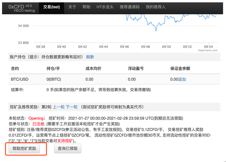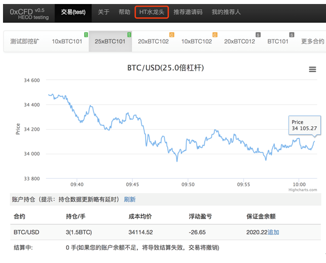 用Google浏览器打开https://0xcfd.com/,链接钱包后,添加Heco testnet网络,具体参数参考:https://mp.weixin.qq.com/s/7v5wWNXGOfRvdgxNSuEv2Q