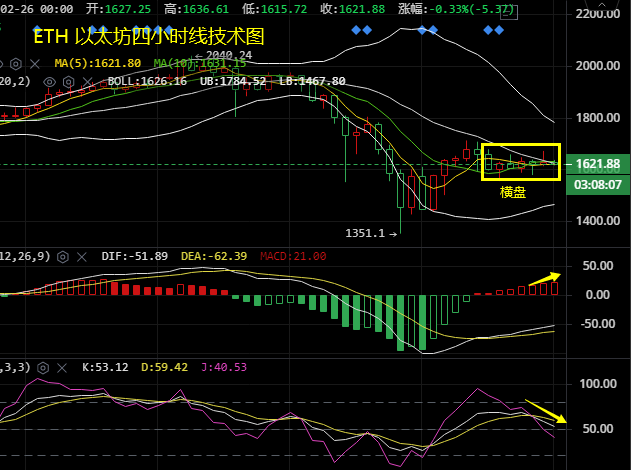以太坊(ETH):比特币处于涨势之中(3.41%),而以太坊处于跌势之中(-1.15%),毕竟以太坊整体的趋势处于偏空状态,这一点谈老师强调了多次,大趋势承压之下(1780美元),短线也很难有良好的反弹势头,从这两个交易日都可以看出,以太坊多次展开反弹,结果都是承压并继续下探。今日的美盘一波反抽至1673美元一带,但反弹的势头依然匮乏,再度承压下行。四小时上看以太坊阴阳循环,涨跌反复,长久性的横盘于BOLL中轨一带,并且BOLL逐渐呈缩口状态,一触即发式的行情感觉都要随时到来,在这之前谈老师仍是看好区间调整,重点关注1580-1660美元区间,交易上保持高空为主,低多为辅。