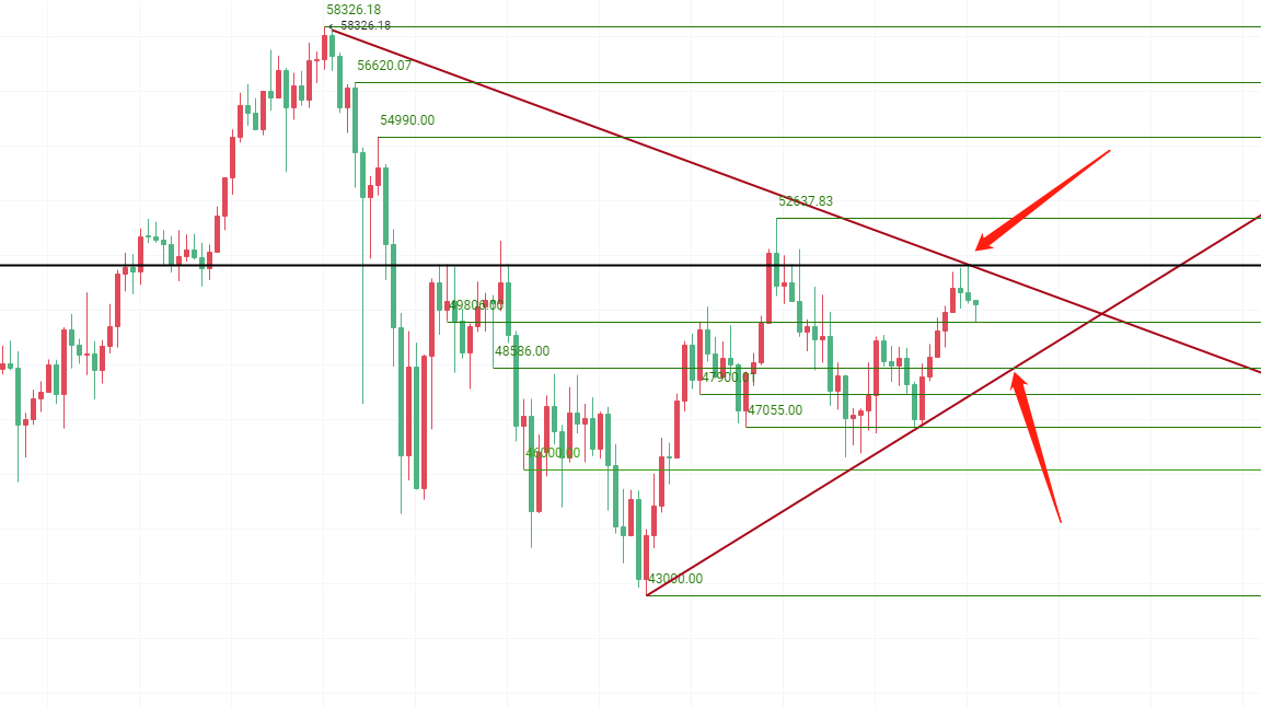 下看49500不破,进场参考建议49550-49650多,止损手动300点,止盈参考点49850-50400-50950,破位看51350