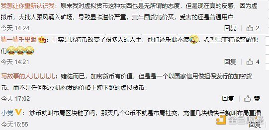 另有网友坦言:“原来我对虚拟货币这种东西也是无所谓的态度,但是现在真的反感,因为虚拟币,大批人跟风涌入矿场,导致显卡溢价严重,黄牛囤货高价买,受害的还是普通用户。”