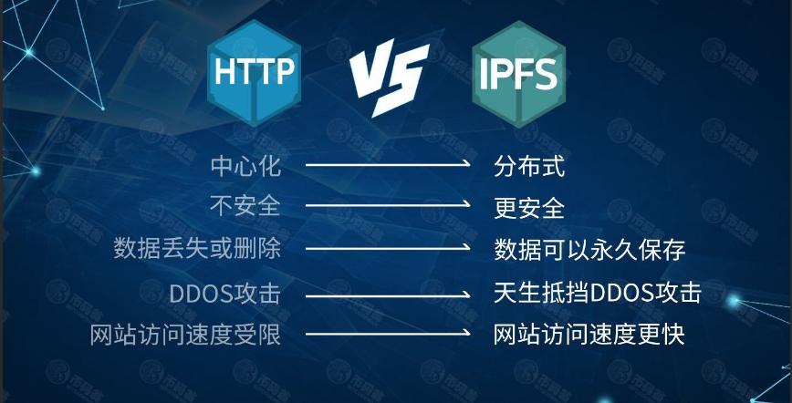 为补偿 HTTP协议的不足,斯坦福大学博士 HuanBennett提出了 IPFS (星际文件系统),以建立一个全球性的、点到点分布式版本的文件系统。利用一种特殊的加密算法,将一个文件分割为多个256 KB大小的碎片,然后将它们分散存储到各个节点中。当使用者下载资料时,系统会根据使用者的 IP地址,将资料从最近的节点传送至使用者的终端。这样既能大大压缩传输时间,又能有效地抵御网络安全隐患,从而使网络带宽成本最小化。