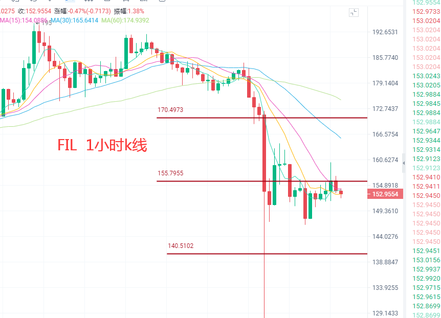 FIL昨日跳水56.88美元,直到126.11触底反弹,上行至164.35后承压回踩,目前现价153.52美元。行情走出破位下行,价格虽小幅反弹,但上方压制未破,短线还有回调的需求,关注下方低位145.55一线的支撑情况,破位将打开一定的空间延续。历辉建议稳健先观望下,实在想进场请尽量顺趋势操作,注意控制好风险!