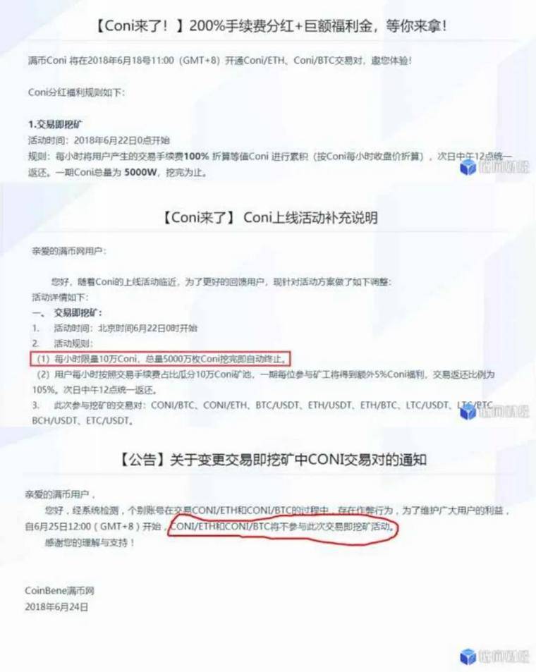 2018年:满币网随意修改挖矿规则、增加流通量,导致投资者受损