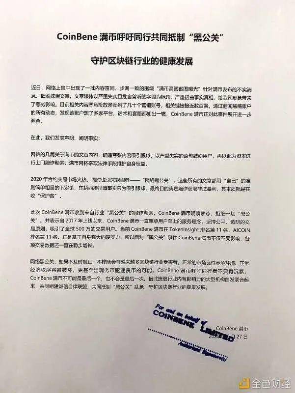 第二部分:网络文章,通过不实内容鼓动用户,再以此为资本上门敲砸勒索,满币将采取法律手段维护自身权益。