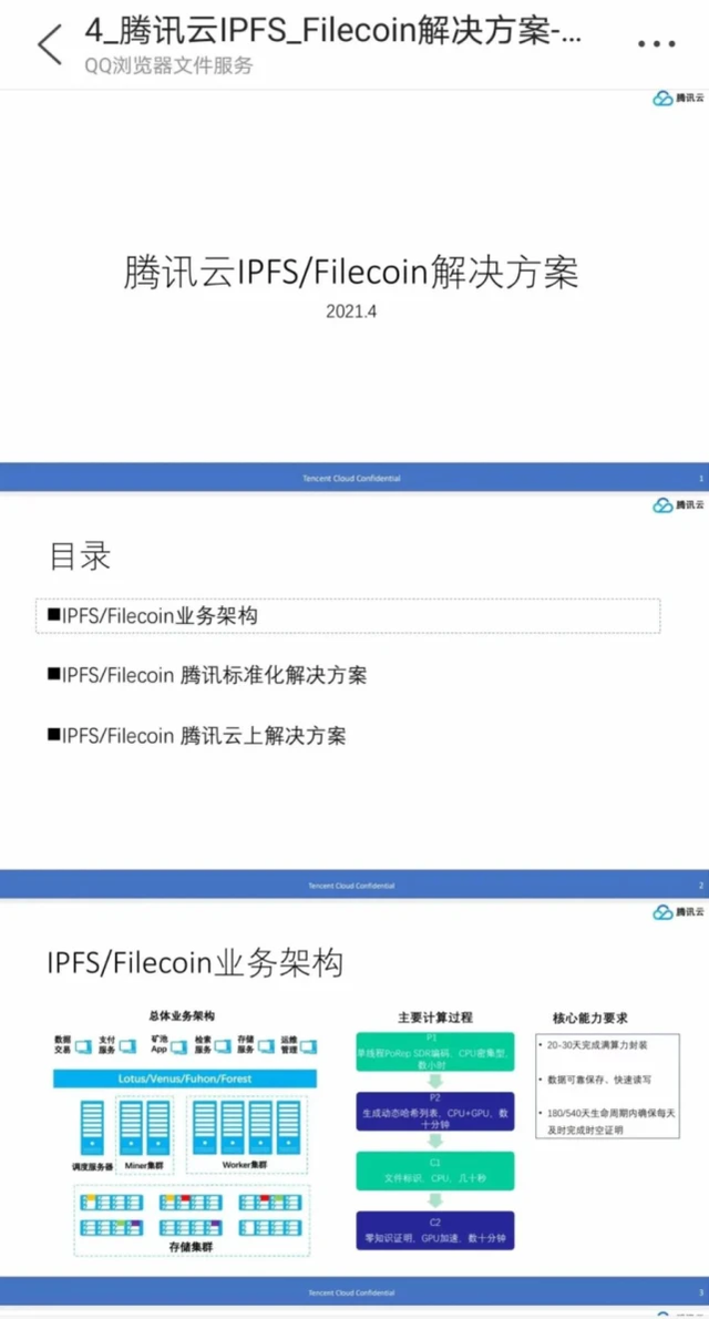 最近,腾讯云 IPFS/Filecoin解决方案的截屏在业界广为流传,从截屏中我们可以看出,腾讯云的 LOGO非常清晰,内容显示了 IPFS/Filecoin与腾讯云解决方案等相关内容,而互联网、云存储巨头腾讯布局 IPFS/Filecoin分布式存储也离真正落地还不远。