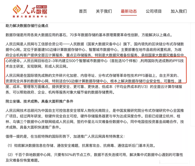 “ 人民云网是人民网与工信部合资公司——人民数据(国家大数据灾备中心)旗下的区块链分布式存储数据中心网。