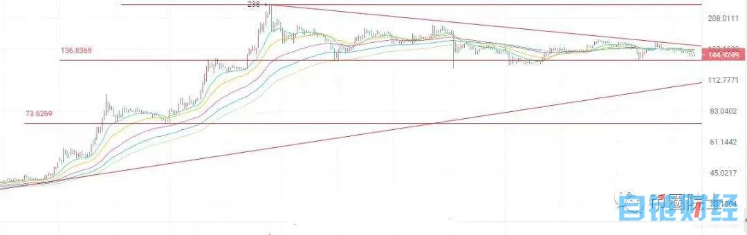 4小时布林带向下扩散,K线围绕布林带下轨(141.60)震荡向下,KDJ震荡下行,MACD放量下行,DIF和DEA向下扩散,EMA移动平均线交替向下趋势结束,最后的EMA90(152.29)向下交替EMA120(152.38)结束,综合判断FIL不宜操作建议观望为主,行情瞬息万变,勿贪,具体操作以实时策略为主,分析主做参考