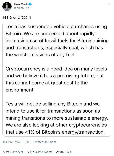 这一公布叫停的举动,距离特斯拉官网接受比特币支付还不到两个月。