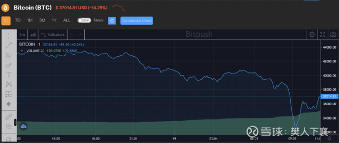周三加密市场惨遭“血洗”。相关数据显示,市值最大的加密货币比特币日内暴跌至3.2万美元上方,以太坊跌幅超过比特币,创下自2020年3月12日以来最大的日跌幅。过去24小时内,加密货币总市值蒸发超过4,600亿美元。