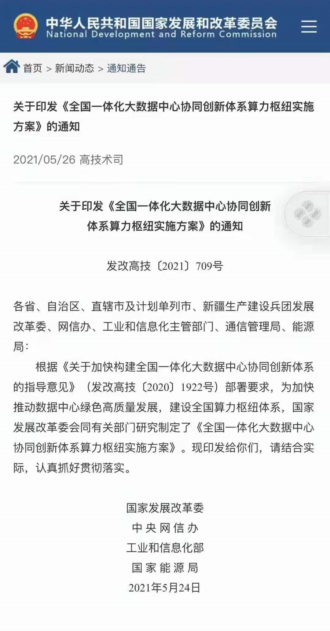 为着力打造数字时代技术产业优势、以数字化转型整体驱动生产方式,5月24日国家发展改革委印发《全国一体化大数据中心协同创新体系算力枢纽实施方案》的通知,以此在全国范围内加快推进数据中心绿色高质量发展、建设全国算力枢纽体系。