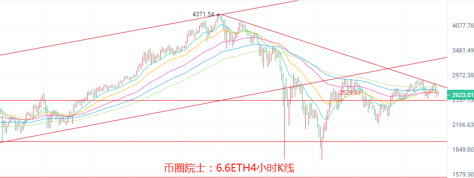 姨太上方冲破EMA30(2787.3)以后技术面压制回调向下蓄力,暂时稳定于EMA60(2687.4)附近,MACD放量,DIF和DEA低位向上扩散,KDJ有向下交替趋势,日线布林带向下收口继续,K线位于布林带中轨(2648.3)附近震荡横盘,4小时布林带横盘震荡,K线暂时触及布林带下轨(2582)回弹,KDJ向下开口扩散,MACD缩量下行,DIF和DEA向下开口扩散,4小时EMA继续收口,进入箱体震荡阶段,短期内思路同步大饼,逢高做空逢低做多,行情瞬息万变,勿贪,具体操作以实时策略为主,分析主做参考