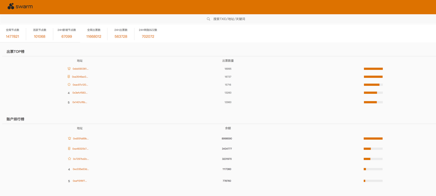 据官方消息,Swarm将于8月2号启动挖矿,已经购买了节点的矿工,可在Swarm挖矿浏览器查询节点情况:http://www.bzznet.com