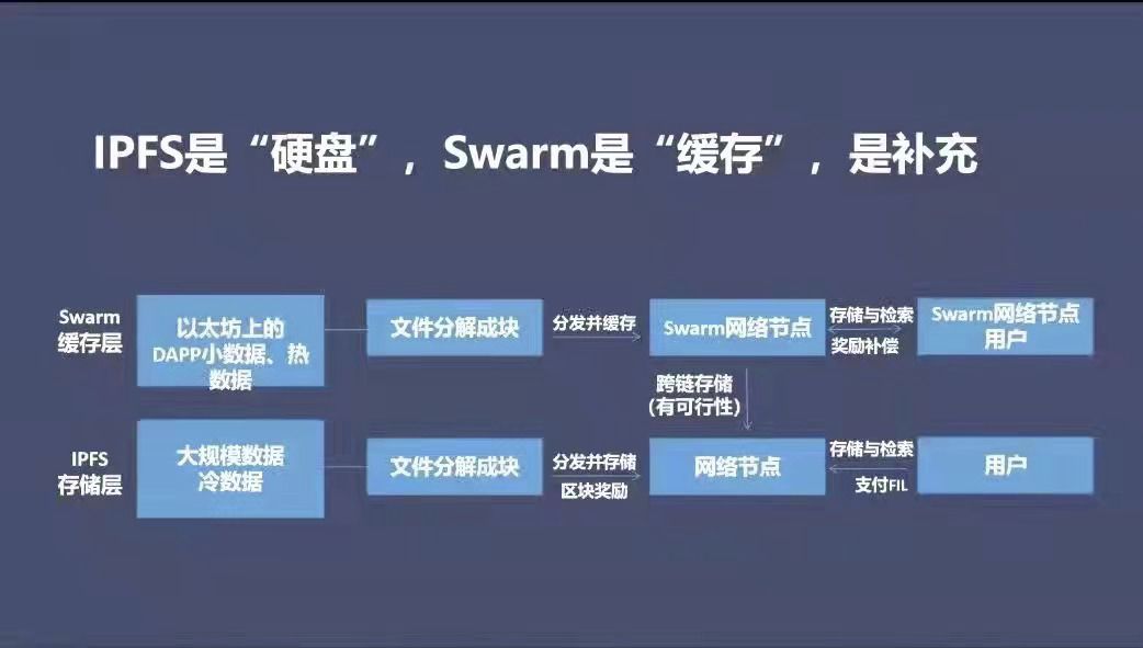Swarm的角色是基于以太坊网络上,致力于打造Web3.0网络内容存储、分发和检索的基础设施。