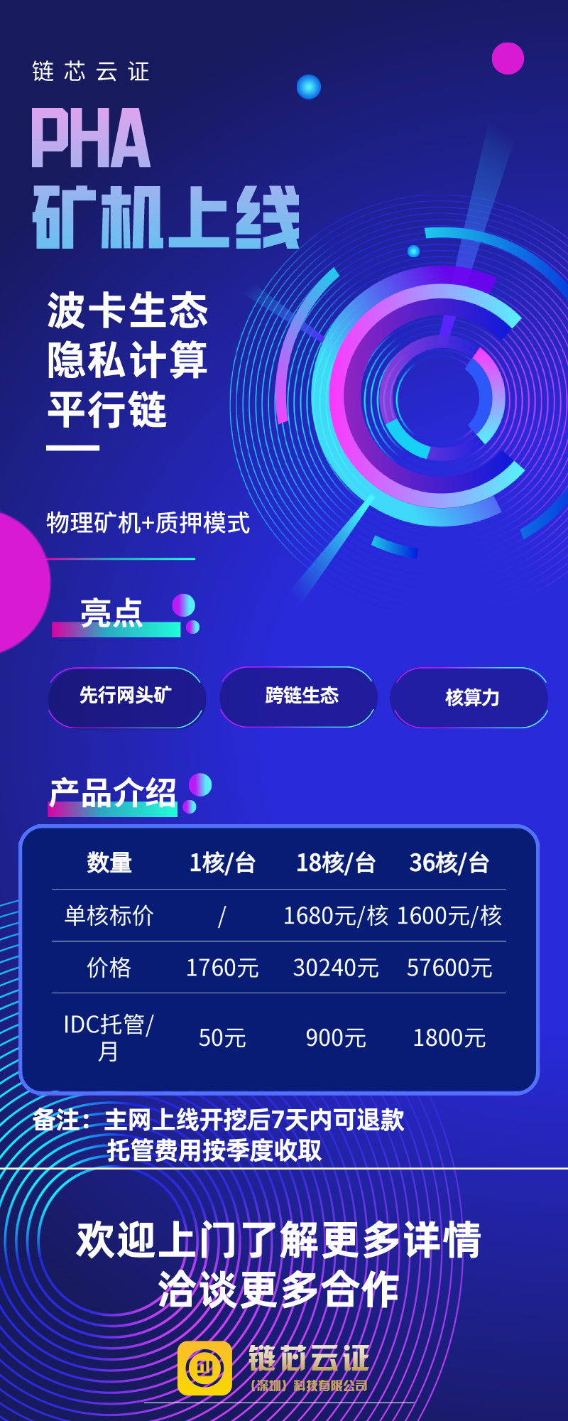 摘要:链芯云证头部矿商企业、集系统开发、节点搭建、超算集群服务、IDC机房托管、运维托管于一体的高科技企业! 全网矿机价格最低,品质最优,技术最强,PHA矿机对接V:kgt134 PHA(Phala)简介 PhalaNetwork是Polkadot上的隐私计算平行链,基于类pow的经济激励模式,Phala将构建出一个由全球数十万矿工组成的分布式隐私计算云网络,实现云计算的隐私性和去信任化。 因为它没有中心化的执行者或数据控制器,所以Phala上的所有计算操作都是去信任化的:Phala仅充当连接矿工贡献的算力和有隐私计算需求的用户之间的桥梁,而区块链则确保交易秩序并保证交易的安全性,且不会泄露任何的具体计算内容相关信息。 凭借其出色创新与技术成果,Phala已成为SubstrateBuildersProgram首批成员,Linux基金会成员,隐私计算联盟(CCC)成员,其应用pLibra和Web3Analytics更是获得两次web3基金会grant。 PHA矿机挖矿简述 PhalaNetwork采用了TEE-区块链融合架构(TEE-BlockchainHybridArchitecture)实