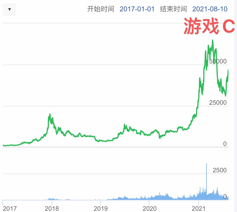 三个游戏,请问你会玩A、B还是C呢?A是最近三个月的比特币,B是最近一年,C是四年。