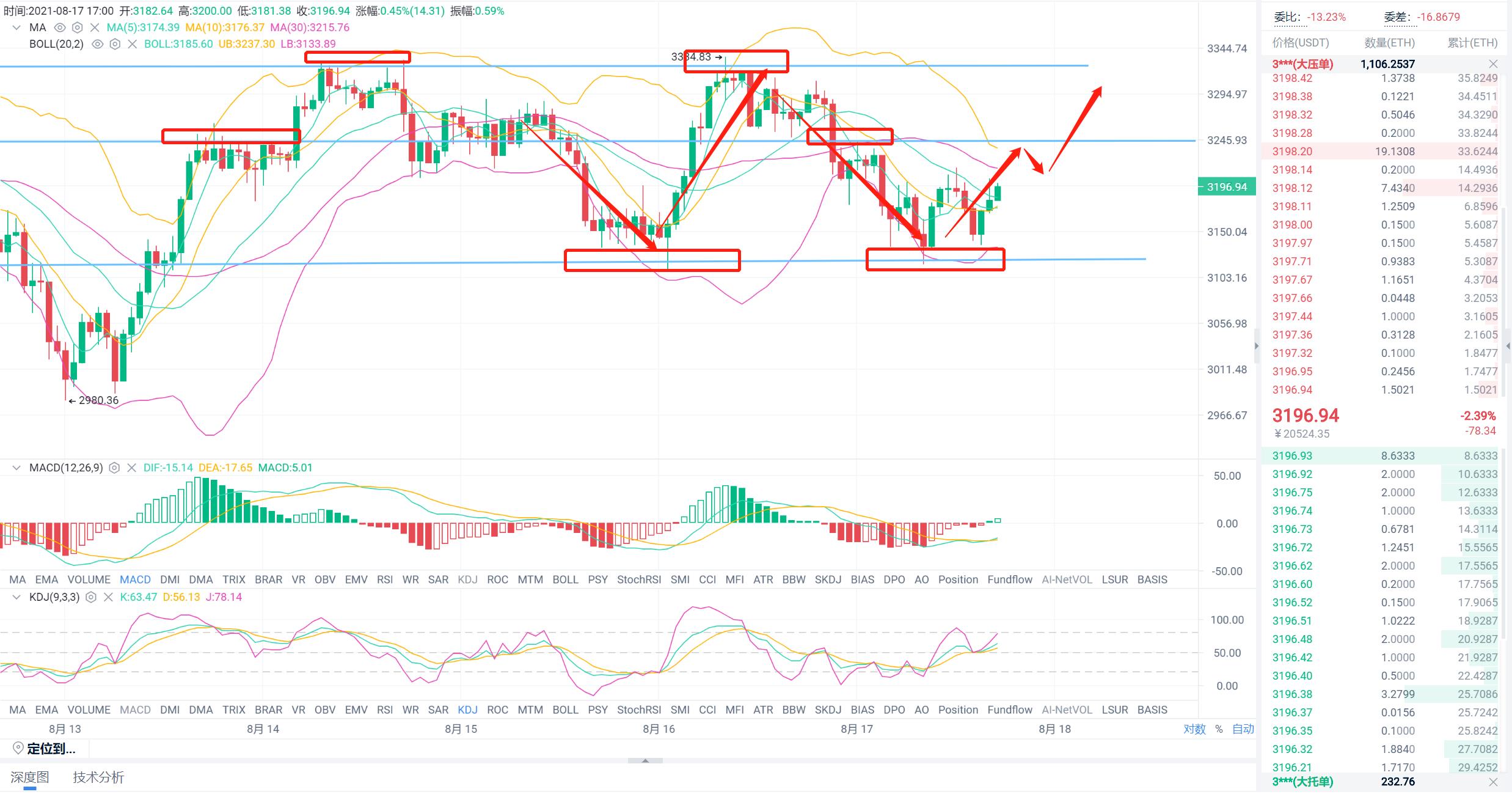 摘要:币天王:比特币通道运行,以太坊顶底出现,近期把握区间