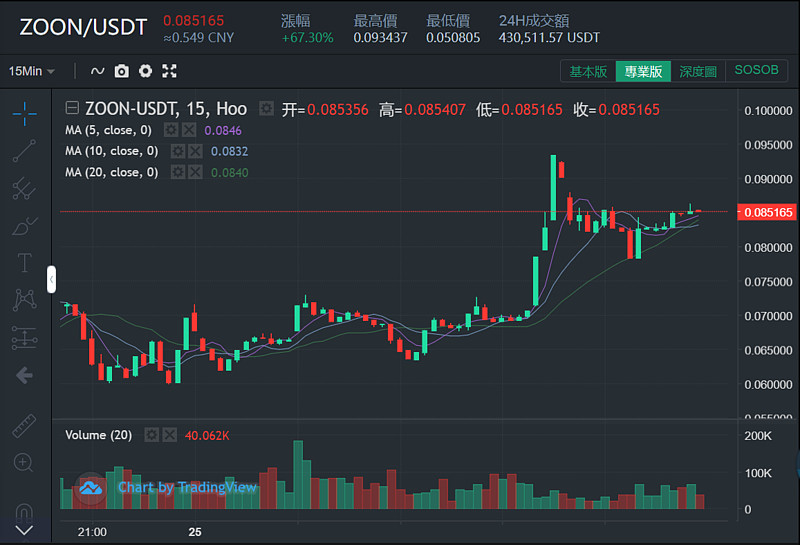(数据来源:Hoo虎符交易所-ZOON当前涨幅高达67.3%)