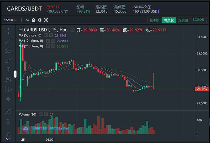 (数据来源:Hoo虎符交易所-CARDS当前涨幅高达99.54%)