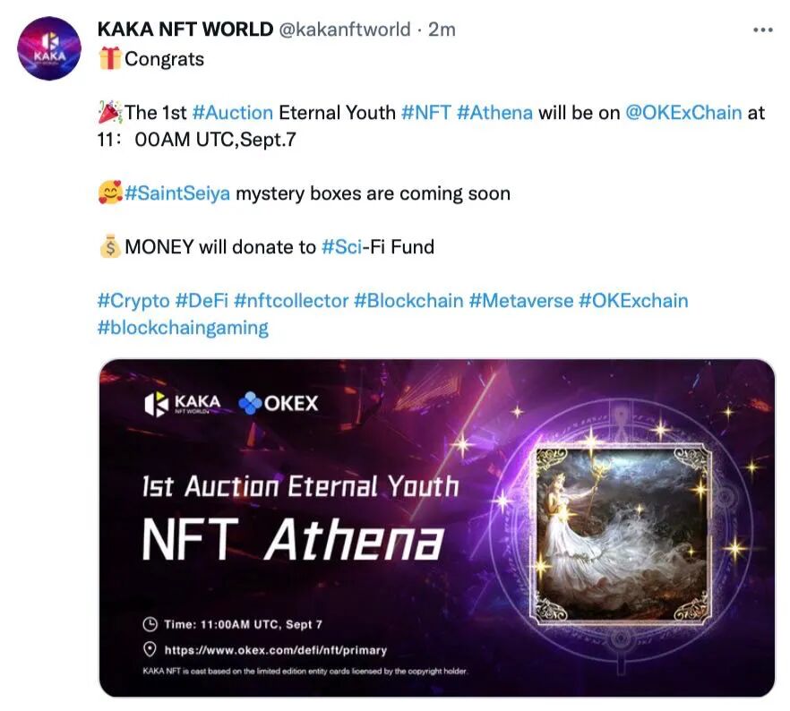 首批NFT联动,KAKA将在OEC上拍卖NFT艺术作品
