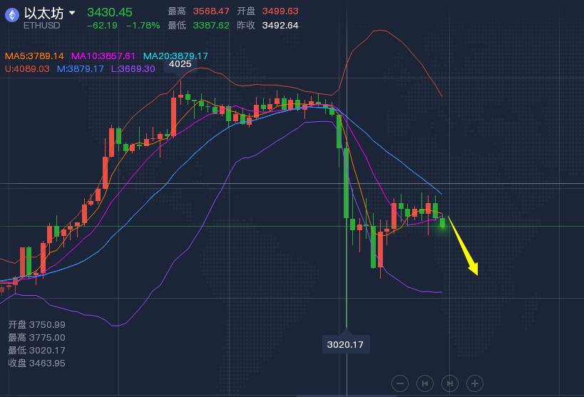 以太坊很明确的就是空头走势,反弹做空就行,不过,介于之前的反复,也要做好意外上涨的准备,先以高空为主,建议反弹3460-3480进场空,顺势下看3350-3250;