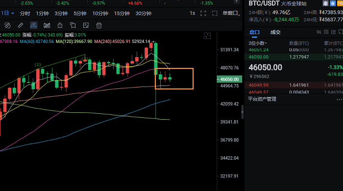 比特币目前处于震荡修复状态,上有阻力,下有支撑,并且未有进一步下行的打算,不过高点逐渐降低,再次下去也是早晚的事,短期还是偏空,整体要以高空为主,晚间重点关注下方45500支撑,下不去,那还是在45500-47500区间震荡,上方阻力可能随着时间的推移在下行,但只要下方支撑还能撑住,就会持续震荡中;