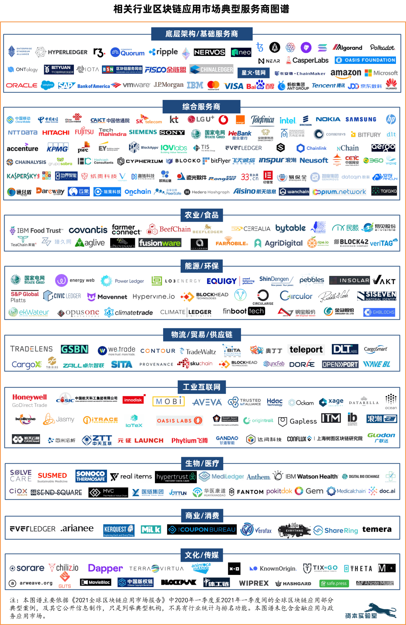 第一、图谱主要依据《2021全球区块链应用市场报告》中2020至2021年一季度间的部分区块链应用典型案例,及其它公开信息制作,只是列举典型机构,不具有行业统计与排名功能。