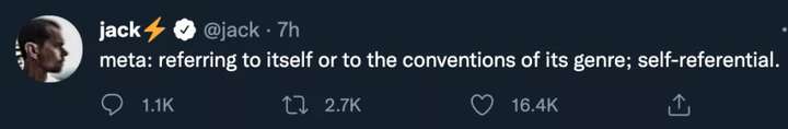 图:Facebook、Instagram、Messenger和WhatsApp接近30亿用户 他首先阐述了此次更名的背景: 我们正处于互联网下一章的开端,这也是我们公司的下一章。 扎克伯格翻阅典籍看到了这个名字,他说,这个新名字来自希腊语中「超越」一词,象征着「总有更多的东西需要建造」。不过,Twitter CEO Jack Dorsey 马上在推特发布了「Meta」的另一个定义:「指事物本身的内质;自我参照。