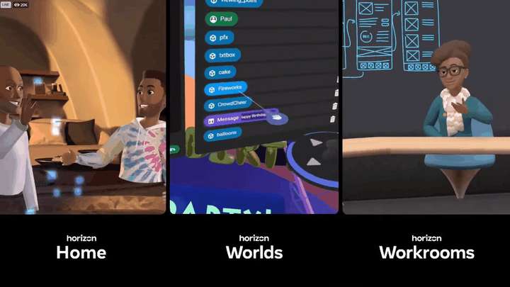 3工作:推出Workrooms企业模式 在工作方面,在不久前Facebook推出了Horizon Workrooms 的功能,在个人的Horizon Home中,Facebook也在日常休闲、社交的功能外添加了个人办公空间的功能,你还可以自定义设计你的工作空间,同时也可以使用Slack、Dropbox等集成功能。