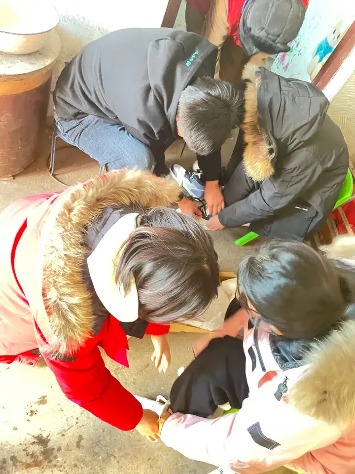 通过聊家常、讲故事等方式,公益团队与孩子们的距离明显拉近,现场为孩子穿上了过冬的新衣、新鞋。
