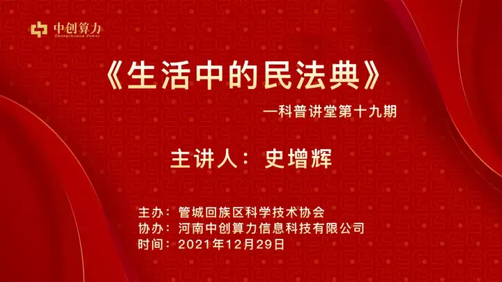 【生活中的民法典】中创算力联合管城区科协共同举办科普讲堂