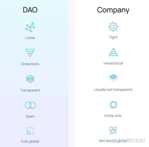 尽管存在多种 DAO,但它们都具有相同的元素,这些元素将它们与传统组织区分开来,并使它们能够公开、负责,并平等地分配在它们内部创造的价值。