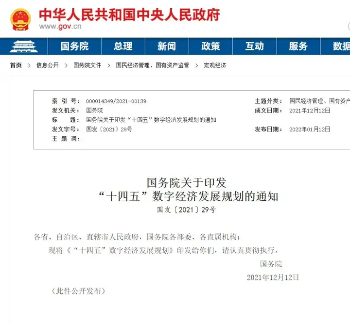 【重磅】国务院印发“十四五”数字经济发展规划,增强区块链等技术创新