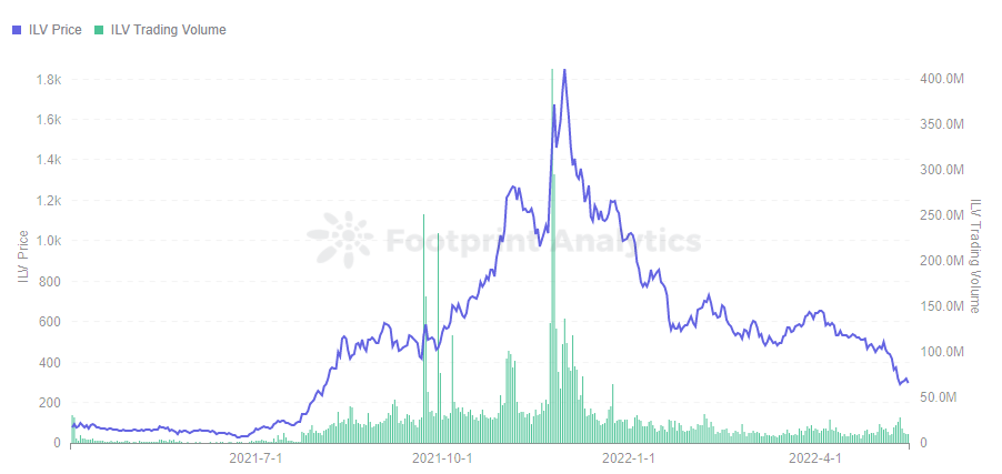 Footprint Analytics - ILV Token Price vs Trading Volume