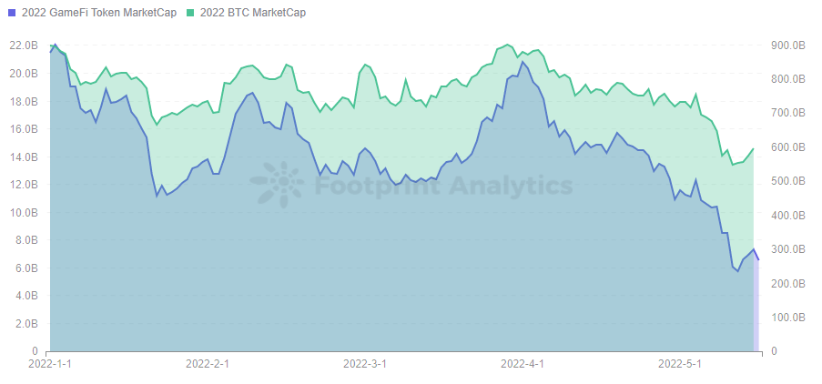 Footprint Analytics - 2022 GameFi Token MC vs BTC MC