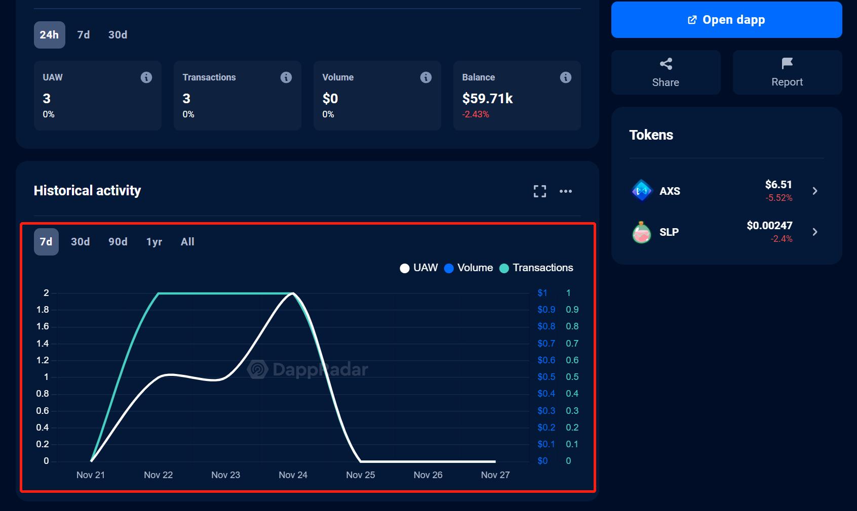 游戏 dApp 基础数据指标,可以通过它来快速反应项目的活跃度。