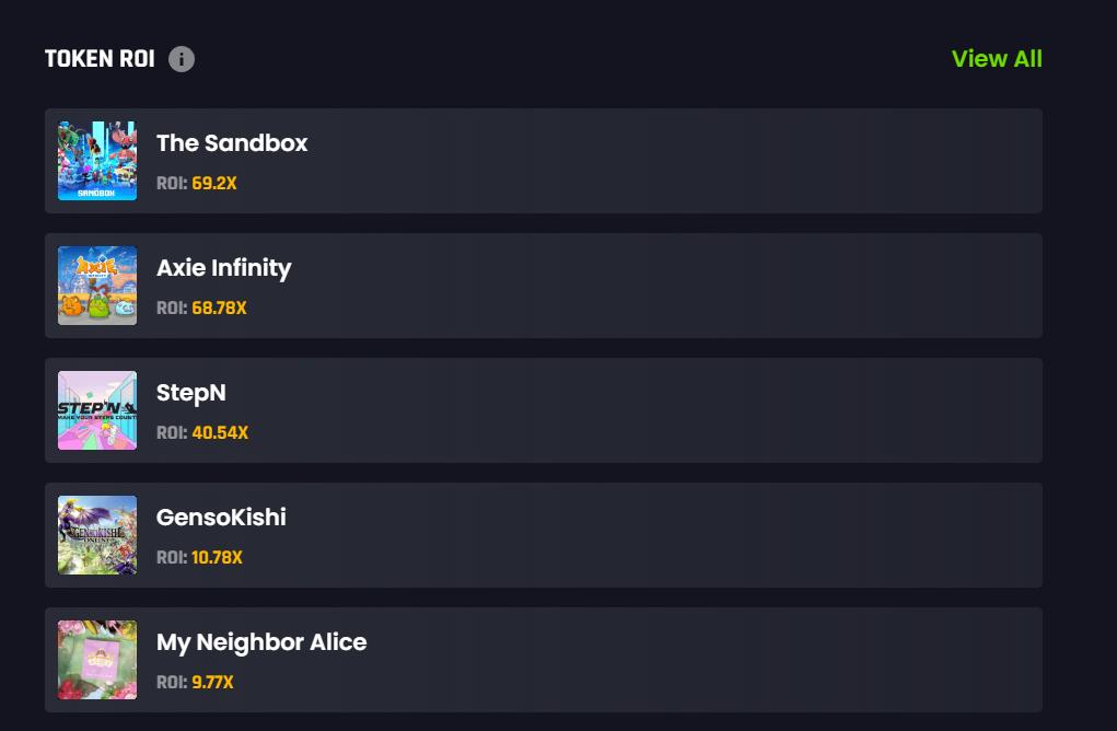 - 观看次数最多:GameFi.org 上网站访问者最多的游戏。
