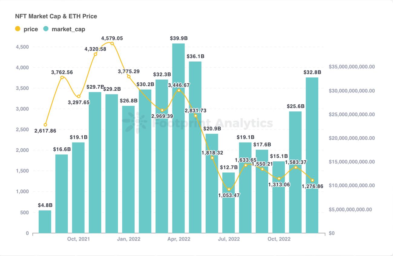 Source: Footprint Analytics - NFT Marketcap & ETH Price