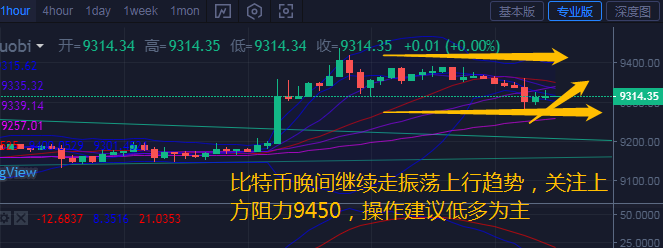从小时线图上看,布林带缩口向前运行,币价回踩至中轨下方运行,各均线微微向上拐头运行,附图中MACD快慢线向下拐头运行于零轴上方,从盘面来看,短期来看行情下方支撑9300明显,行情有再次开始回暖的趋势。汐柔认为晚间行情若企稳中轨9350上方,有进一步上行趋势。