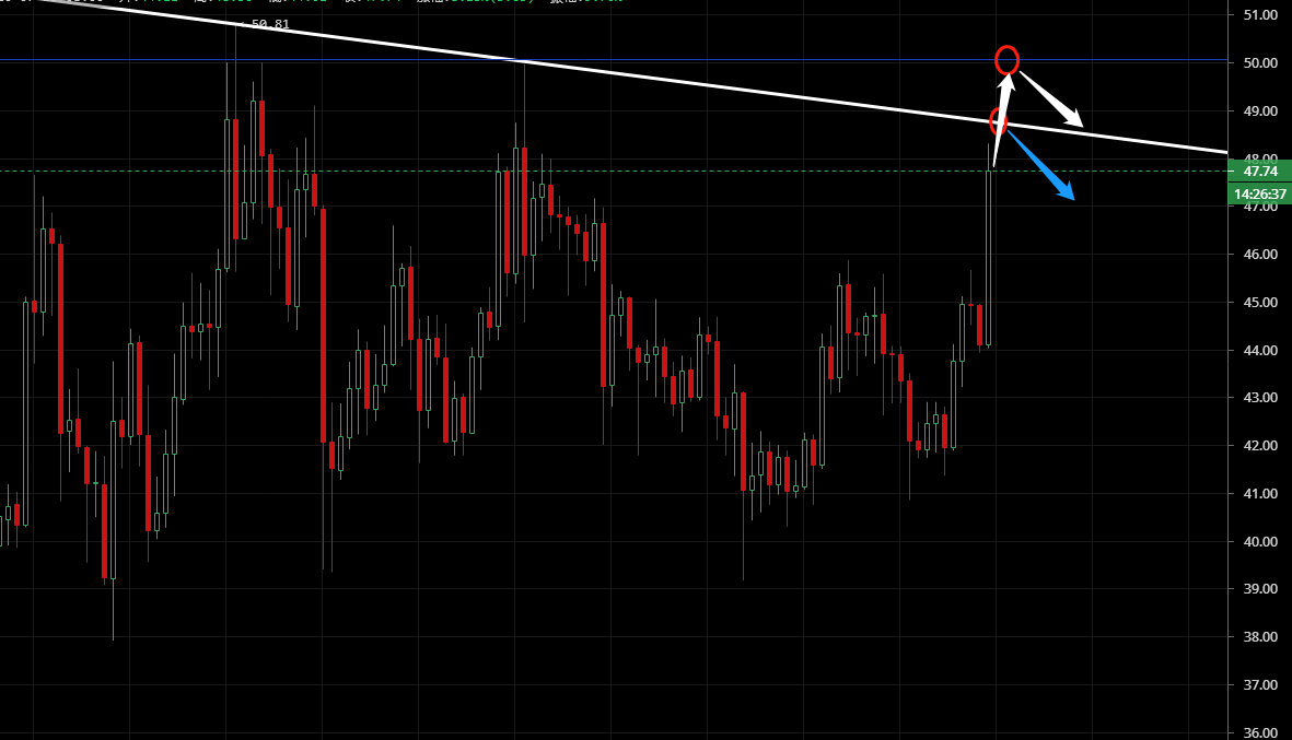 莱特币日线级别来看下午一波拉升价格打破布林带上轨于上方运行,目前来看属于短期补涨,价格受趋势线压制,走势继续参考比特币,短期压力位49-50,下方支撑44,操作上高抛低吸为主。