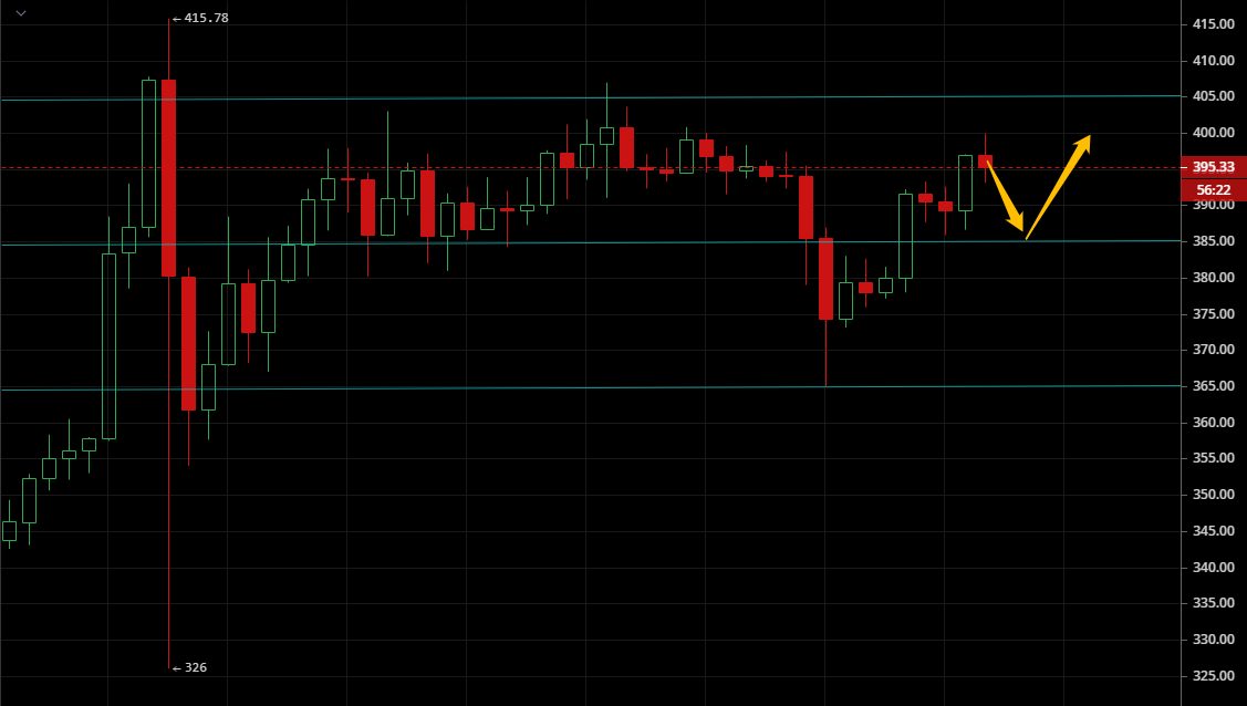 比特币四小时级别来看价格昨日凌晨击穿中轨至三角下方趋势线快速反弹,目前价格于中轨上方运行,布林带呈缩上开口,10日均线于11650形成短期支撑。幅图指标MACD于0轴上方死叉运行,红色动能柱逐渐减少,RSI指标向下拐头,StochRSI指标有死叉迹象,上方压力位11850,下方支撑11550/11500。操作上低多为主,高空为辅。
