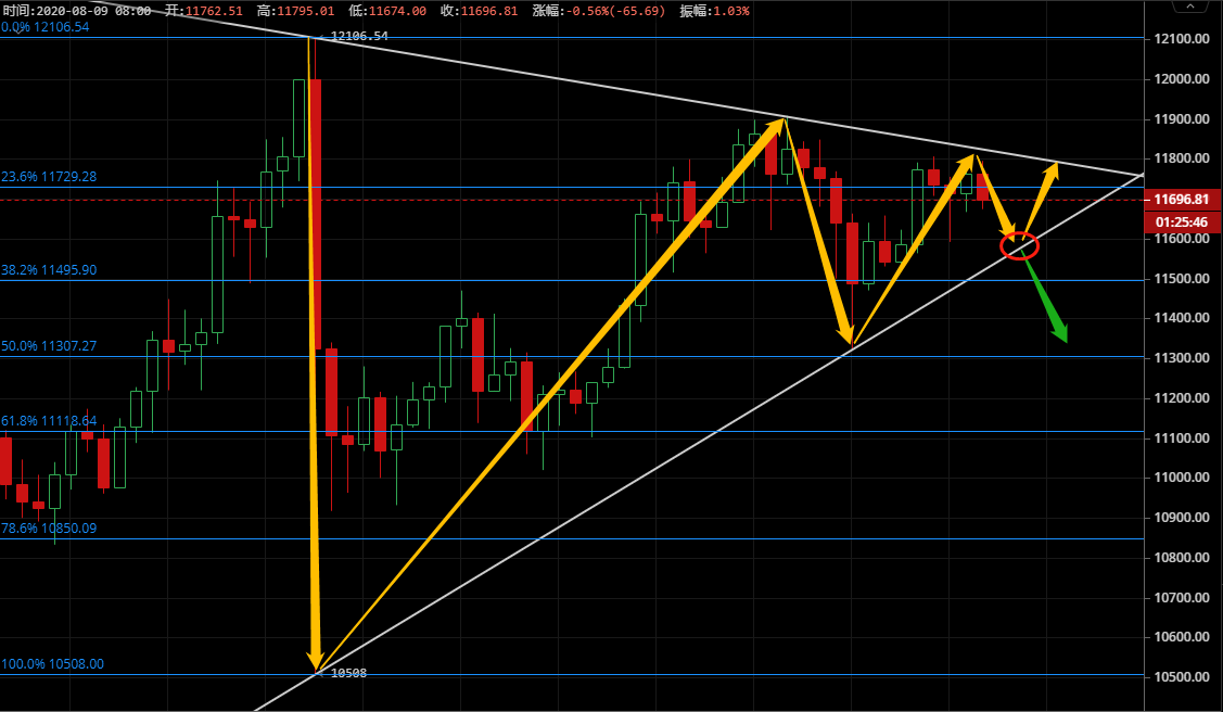 比特币昨日凌晨最低下探至11322美金后快速反弹,昨日晚间和今日早间价格多次上行至11800附近受阻回落,目前价格11739附近。昨日布局比特币,以太坊多空单成功获利出局。