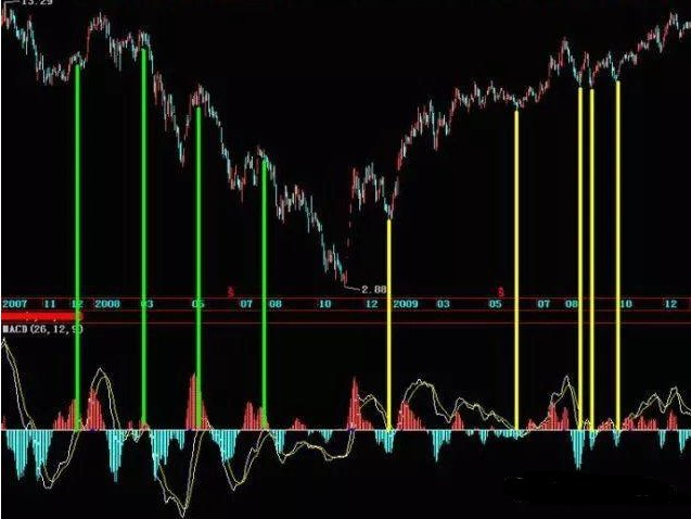 所有的绿色段都是空头市场时返回零轴,都对应着相应的高点,