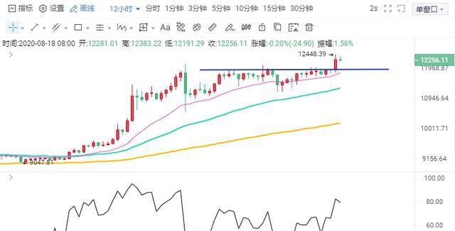 BTC / USDT货币对的价格从昨晚21:00到23:00显示出积极的迹象,从11870美元跃升至12448美元的盘中高点,表明购买压力很大。然而,剧烈的拉幅导致动能的衰竭,动能在不久后发生了变化,导致行情有了下行修正的需求。